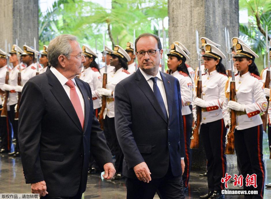 当地时间2015年5月11日,古巴哈瓦那,法国总统奥朗德出访古巴,与古巴领导人劳尔·卡斯特罗会面。成为一个多世纪以来首位访问古巴的法国总统。