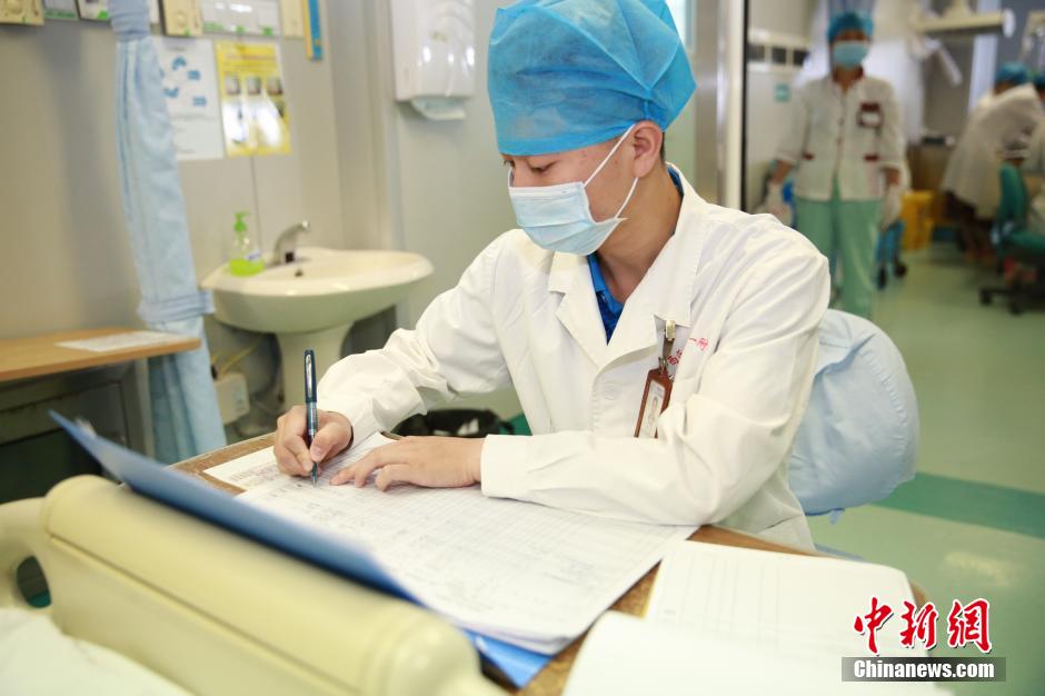 5月12日,国际护士节。在广西医科大学第一附属医院,一群90后男护士依然忙碌着。这些90后男护士大多刚从学校毕业,他们因为体力充沛,心理承受能力大,应变能力强等特点,主要分布在急诊科、手术室、ICU病房等科室工作,被医院女护士们称为“护士兵”。蓝飞燕 摄