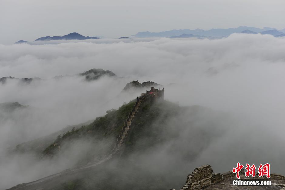 5月11日早间,雨后的河北承德金山岭长城出现大批云海景观。在朦朦胧胧中,长城若隐若现,宛若绝美的大自然风景画。蔚为壮观的金山岭云海是摄影爱好者所一直追寻的美景之一,长城在云雾中若隐若现,云雾在长城中涌动起伏,神秘莫测,让人放佛置身于仙境中。郭中兴 摄