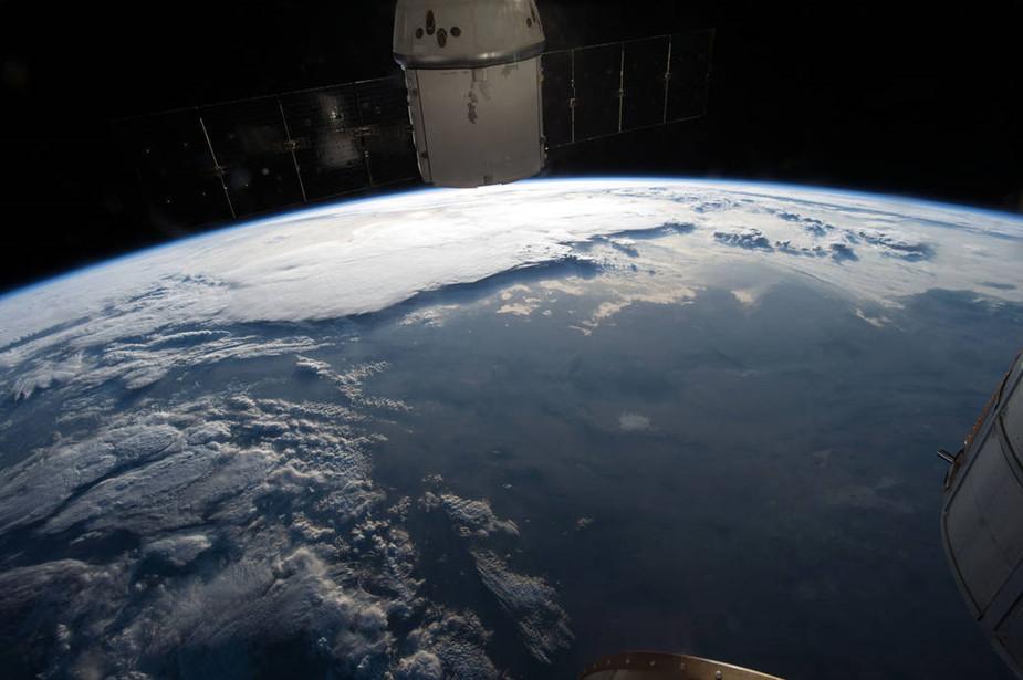国际空间站在220英里的高空中,以每小时约17500英里的速度环绕地球。由于国际空间站在月92分钟内就能环绕地球一周,空间站人员每天经历16次日出和日落。(图片来源:NASA)