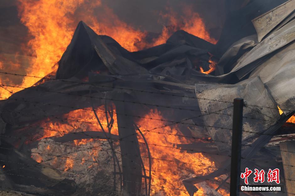 5月13日,济南伊利乳业有限公司液奶仓库发生火灾,目前过火面积达四千多平米,暂无人员伤亡,航空护林飞机已参与灭火工作。记者在火灾现场仍然可以看到明火和股股冒出的浓烟。梁犇 摄
