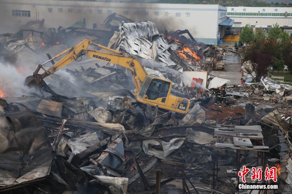 5月13日,济南伊利乳业有限公司液奶仓库发生火灾,目前过火面积达四千多平米,暂无人员伤亡,航空护林飞机已参与灭火工作。记者在火灾现场仍然可以看到明火和股股冒出的浓烟,航空护林飞机不断在空中盘旋播洒灭火材料,以控制火势蔓延,铲车开始清理过火厂房。梁犇 摄