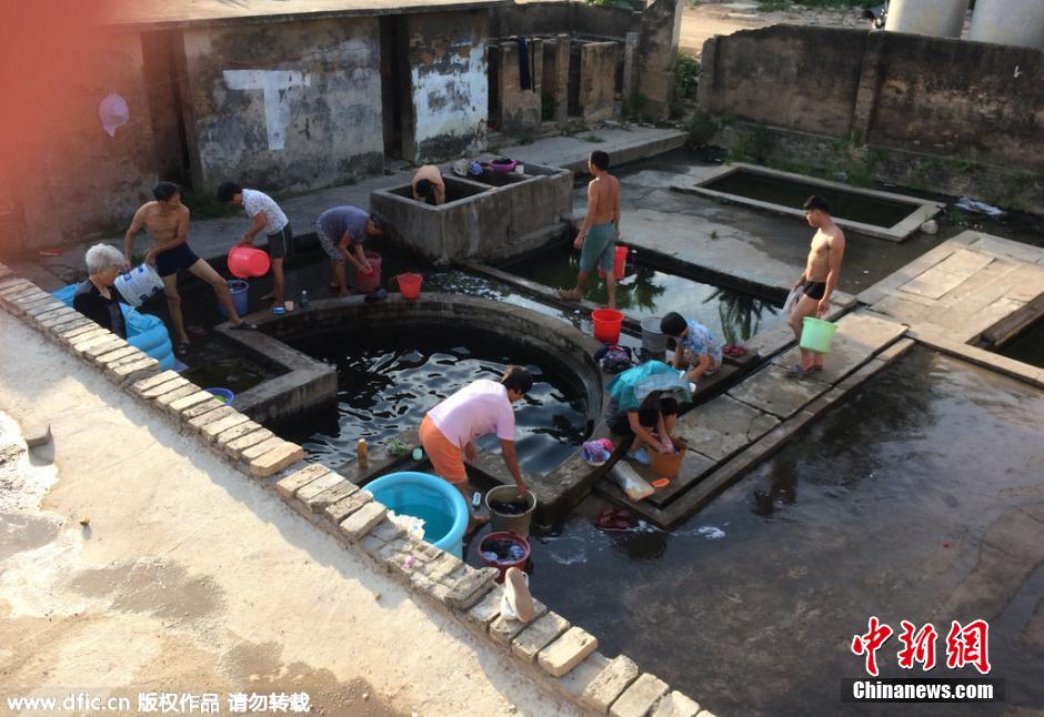 2015年5月13日,海南省三亚市文物保护单位、崖州古迹之一的“既济亭热水池”由于长期以来无人管理,水量越来越少,成了附近居民的露天澡堂。该温泉的修建历史可上溯到明正德年1506到1522年间。图片来源:东方IC 版权作品 请勿转载