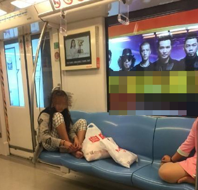 女子在地铁座椅上抠脚,被同车厢乘客拍下。