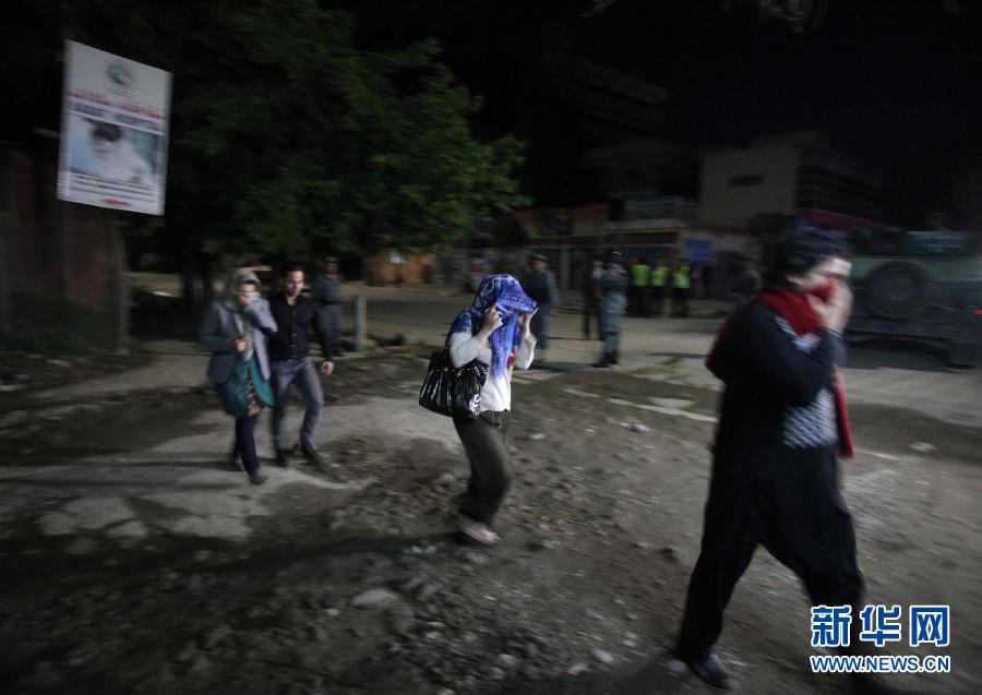 5月14日,在阿富汗首都喀布尔,被困旅客得到救援后走出酒店。阿富汗官员13日晚向新华社记者证实,首都喀布尔一家外国人经常光顾的酒店当晚遭到不明身份武装分子袭击,伤亡情况不明。新华社发 马苏德 摄 图片来源:新华网