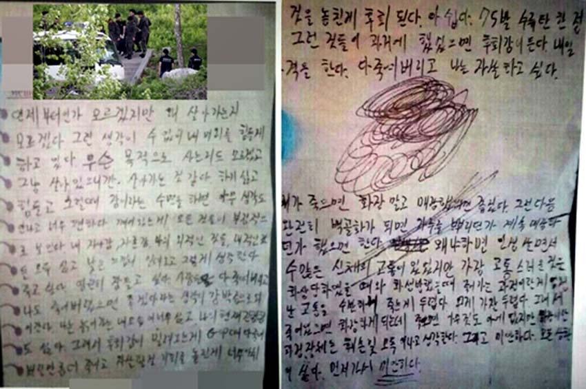 韩国预备役部队训练场枪击案凶手崔某的遗书(网页截图)