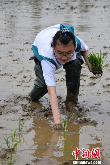 学生体验手工插秧 马芙蓉 摄