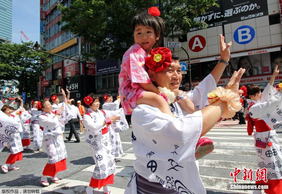 当地时间2015年5月17日,日本东京,当地举行小原祭庆典活动,2600名舞者身着日本传统服装上街庆祝。