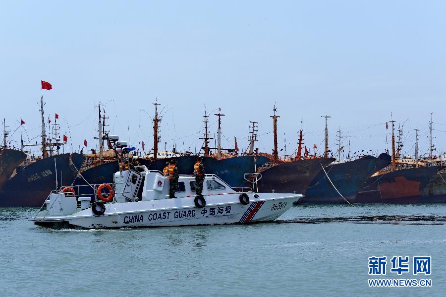 福建海警官兵在海上进行执法检查(5月7日摄)。 2014年以来,福建省海洋与渔业、公安边防、海警等16个部门在福建管辖海域联合开展打击非法采捕红珊瑚专项行动。通过海上查、港口堵,加大重点海域、重点渔区的执法力度,严密监视福建沿海非法采捕红珊瑚动向。一年来,共出动执法船艇546艘次,执法人员5710人次,航程2万多海里,检查船舶46461艘次,查扣涉嫌非法采捕红珊瑚船舶100多艘,破获非法交易红珊瑚案件32起,查获红珊瑚196.1公斤,抓获犯罪嫌疑人59人,有效遏制了非法采捕红珊瑚的行为。红珊瑚生长极为缓慢,是中国一级保护水生野生动物,是国际《濒危野生动植物种国际贸易公约》目录品种。 新华社记者 张国俊 摄