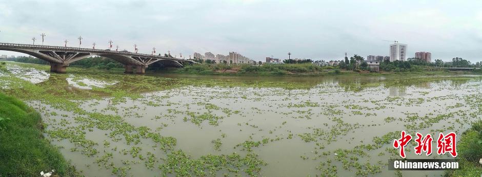 5月中旬,大量繁茂的水葫芦侵占北部湾水系河流——广西钦州市钦江。当地水利、环保部门调查后表示,水葫芦系从该市灵山陆屋江面上冲下来,大量滋生并非企业排污所致,与天气闷热和繁殖速度过快有关。黄宇琨 摄