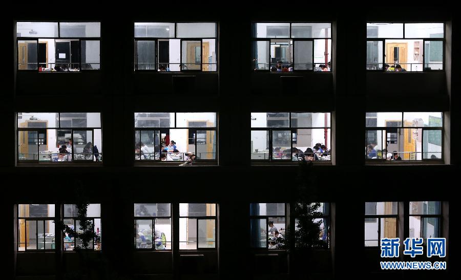 5月18日晚,在江苏连云港高级中学,即将参加高考的学生在上晚自习。距离高考仅剩半月时间,连云港高级中学的高三学生“挑灯夜读”,备战高考。 新华社发(王健民 摄)