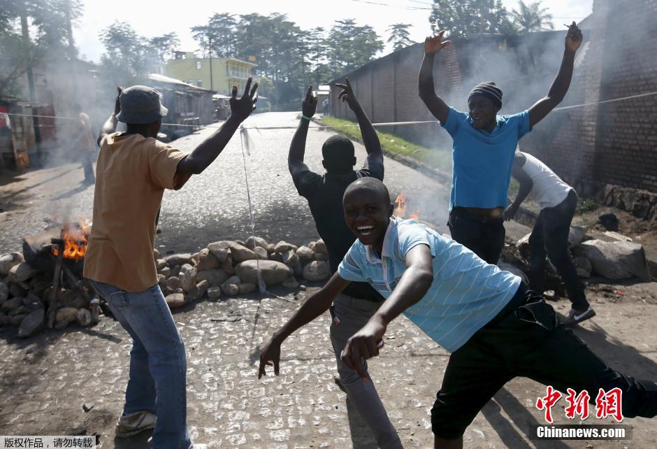 当地时间5月14日,布隆迪布琼布拉,反对现任总统皮埃尔·恩库伦齐扎连任的抗议活动持续。布隆迪军方一名高级将领尼永巴雷13日宣布,总统皮埃尔·恩库伦齐扎在军事政变中被推翻。但14日,另一名军方高官宣称,政变未遂,支持总统的武装力量正牢牢掌控总统府。这一声明稍后又遭到反对派的否认。