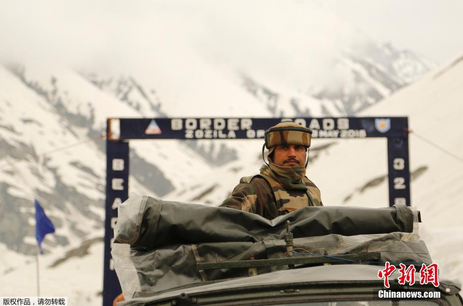 图为国道上一名坐在军车上的士兵。
