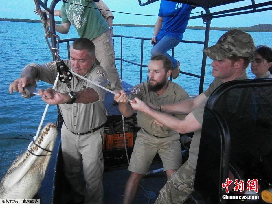 哈里王子捕鳄鱼照曝光 徒手擒拿3米长咸水鳄