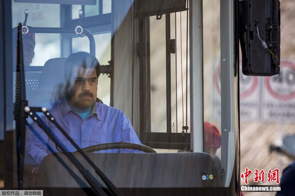 当地时间2015年5月16日,委内瑞拉洛斯特克斯,委内瑞拉总统马杜罗出席新公交线路开通仪式,并亲自驾驶客车。