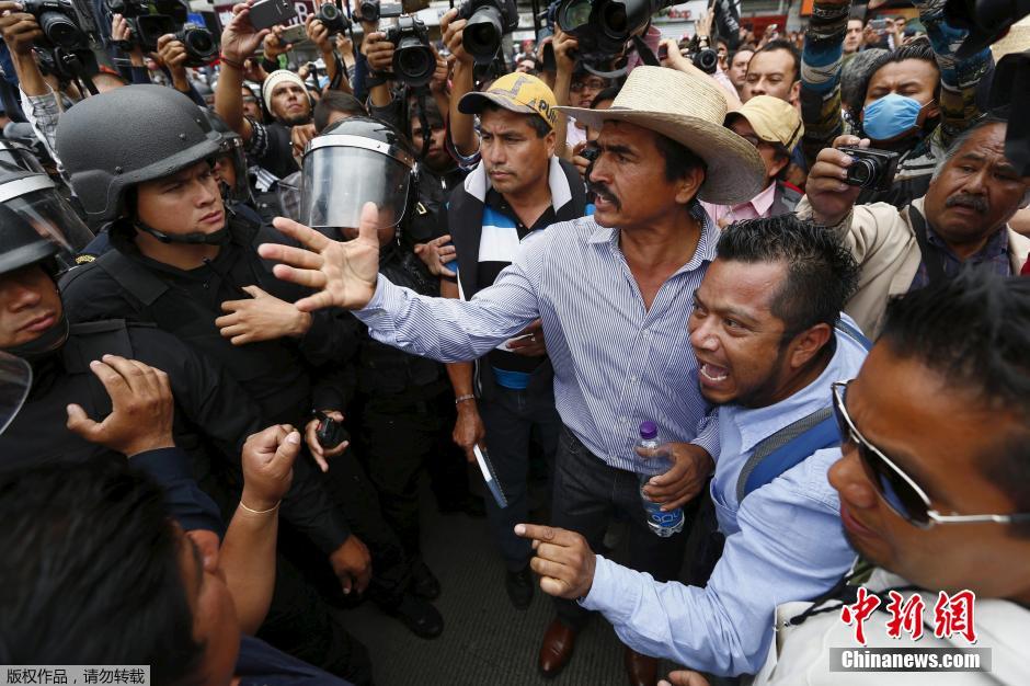 当地时间2015年5月15日,墨西哥墨西哥城,上千墨西哥教师组织游行,要求政府提高薪资并改革教育系统。