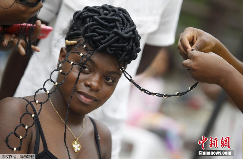 当地时间2015年5月17日,哥伦比亚卡利,当地举行非洲式发型比赛。