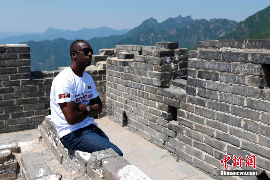 5月15日,时值2015北京田径世锦赛倒计时100天系列活动之际,国际田联派出了三位明星运动员科林·约翰逊,迈克·鲍威尔和迈克尔·约翰逊(图),来到北京助推2015北京田径世锦赛。中新社发 富田 摄