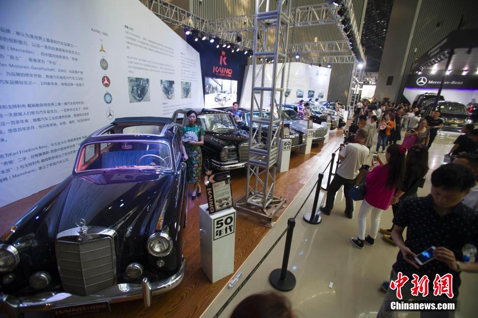 5月15日,某参展商携带从50年代至90年代的老款奔驰轿车集体亮相太原国际车展,不少爱车迷与民众首次近距离接触这些老爷车,展台前人头攒动络绎不绝。当日,2015年中国太原国际汽车展览会在中国太原煤炭交易中心举行,来自海内外的近百个汽车品牌纷纷携带自己最新车型亮相。中新社发 张云 摄