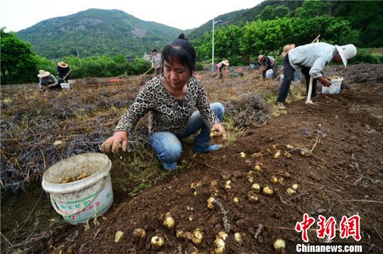 5月15日,浙江省舟山市定海区金塘岛仙居社区种植专业户陆兆祥开始收获中药材“贝母”。当天开始,岛上“贝母”进入收获期。据悉,中药材“贝母”,是金塘岛上的特色农产品之一,全岛种植1700亩,估计可售鲜贝500吨。