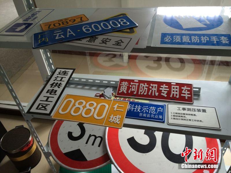 贵州州省公安厅5月13日举行新闻发布会通报称,贵州警方通过户外张贴的“野广告”入手,成功摧毁两个相关联的横跨多省,集产、供、销为一体的特大制贩假证件、假车牌犯罪团伙,案值金额高达2600余万元人民币。警方先后共抓获主要犯罪嫌疑人26名,捣毁制假窝点多处,收缴制模机7台、全国各省水印制假模板16块、涉及全国多地的各类假车牌5.5万余副,各类假证件5.1万余本。图为警方收缴的涉案物品。中新社发 钟欣 摄