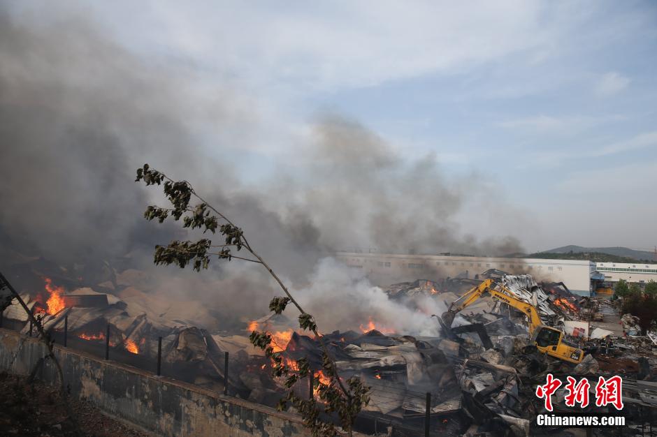 5月13日,济南伊利乳业有限公司液奶仓库发生火灾,目前过火面积达四千多平米,暂无人员伤亡,航空护林飞机已参与灭火工作。记者在火灾现场仍然可以看到明火和股股冒出的浓烟。梁犇 摄