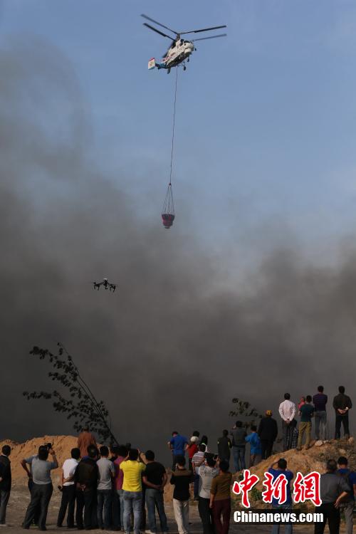 5月13日,济南伊利乳业有限公司液奶仓库发生火灾,目前过火面积达四千多平米,暂无人员伤亡,航空护林飞机已参与灭火工作。记者在火灾现场仍然可以看到明火和股股冒出的浓烟,航空护林飞机不断在空中盘旋播洒灭火材料,以控制火势蔓延。梁犇 摄