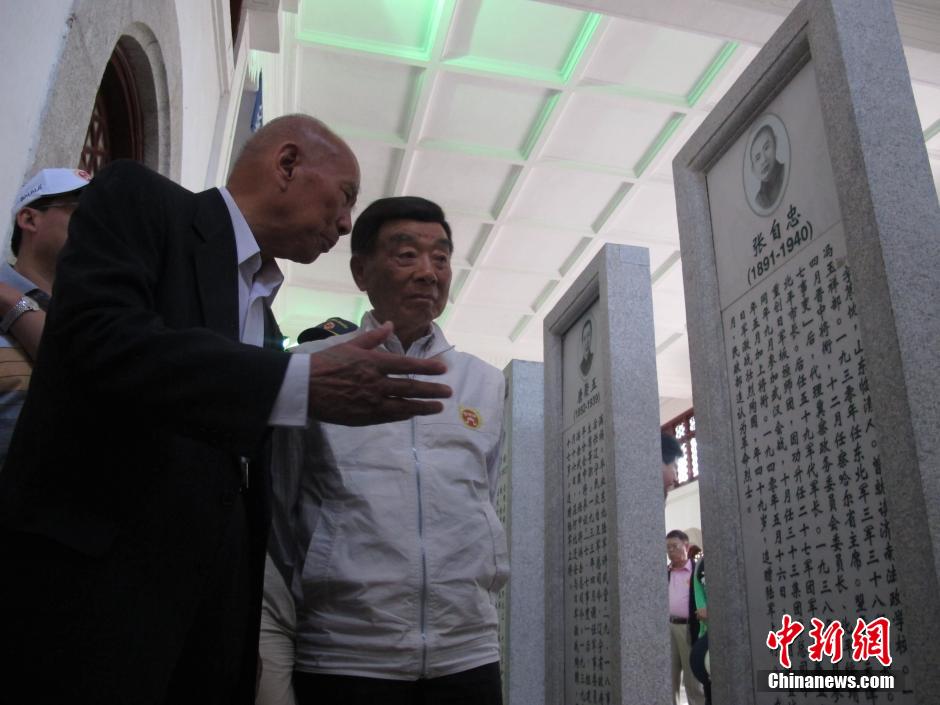 参加第九届黄埔论坛的代表5月13日来到湖南衡阳,参观南岳忠烈祠并举行祭拜活动。图为黄埔军校同学会会长林上元参观抗日将士纪念碑。中新社发 杨喆 摄