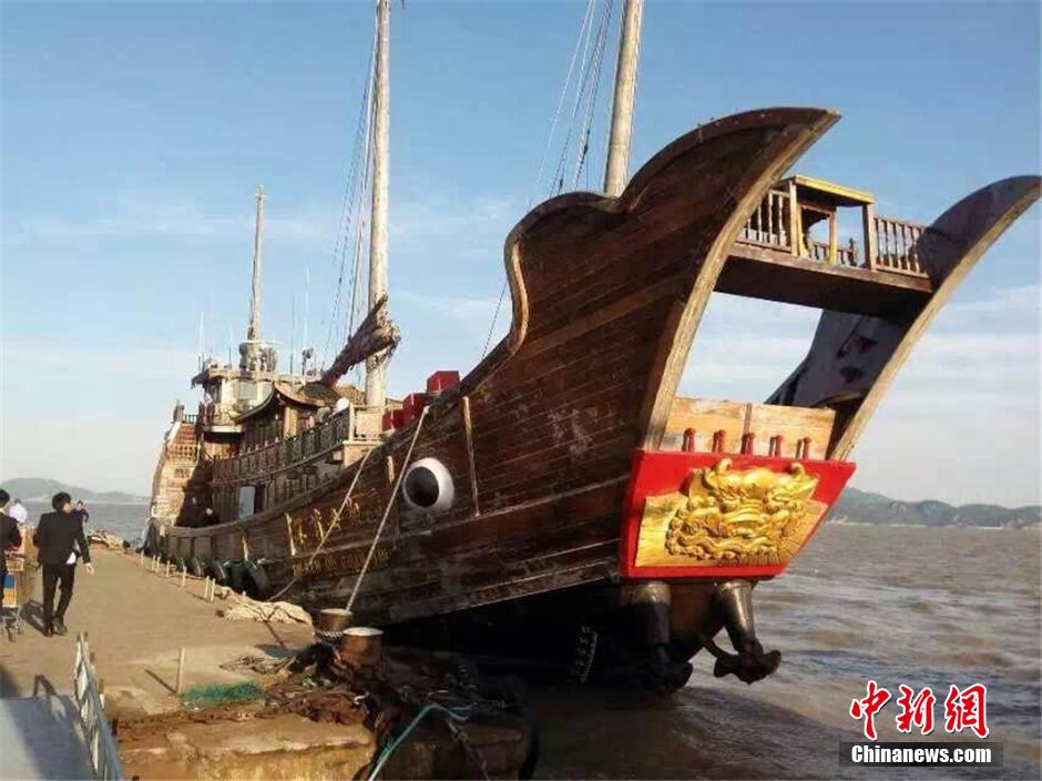 浙江普陀山花费千万打造仿古船 渔火中听海坐禅