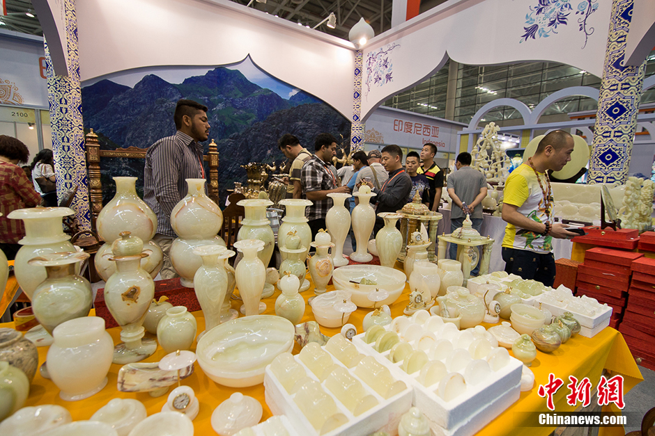 吉尔吉斯坦玛瑙制品吸引众多市民咨询。 李南轩摄