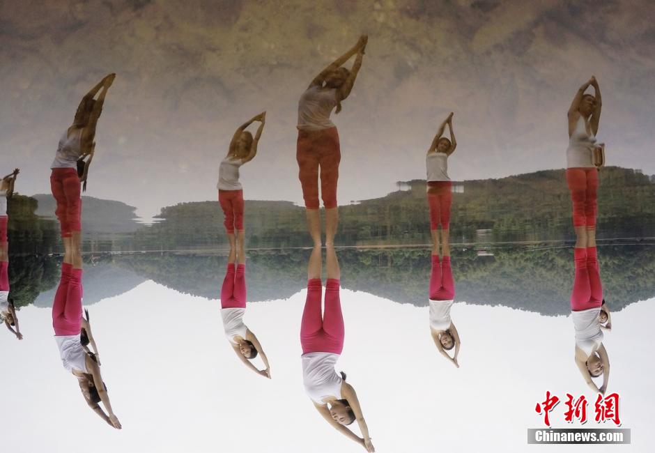 5月20日,三鑫瑜伽教练学校的老师和学生们在长沙石燕湖上演了一场水上瑜伽绝技。这些瑜伽达人们在水中搭建的高台上练习着各种高难度瑜伽动作,以此传播绿色生活理念,倡导人与自然的和谐相处。 杨华峰 摄