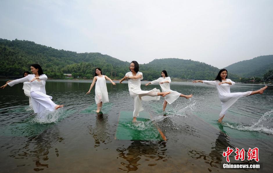 长沙瑜伽达人上演水上瑜伽 秀优美身段