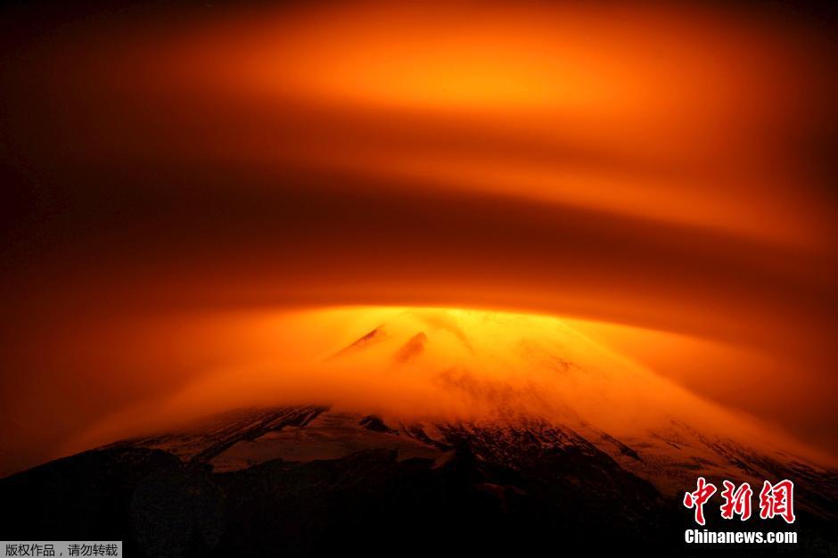 5月18日,智利比亚里卡火山喷发,火焰染红云朵场面壮观。