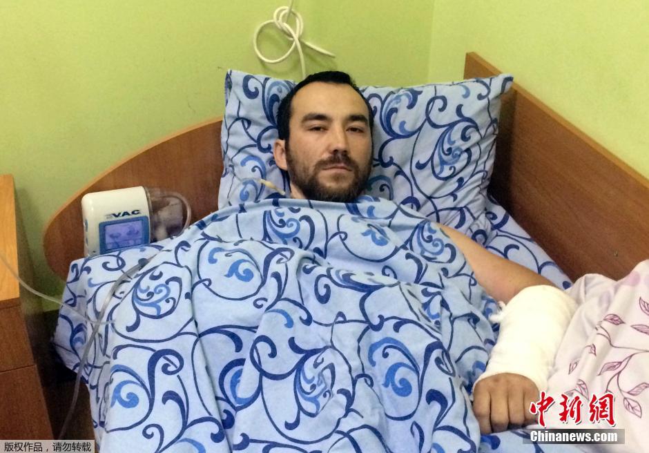 当地时间2015年5月18日,乌克兰基辅,被俘的俄罗斯特种兵Yevgeny Yerofeyev躺在军事医院中。