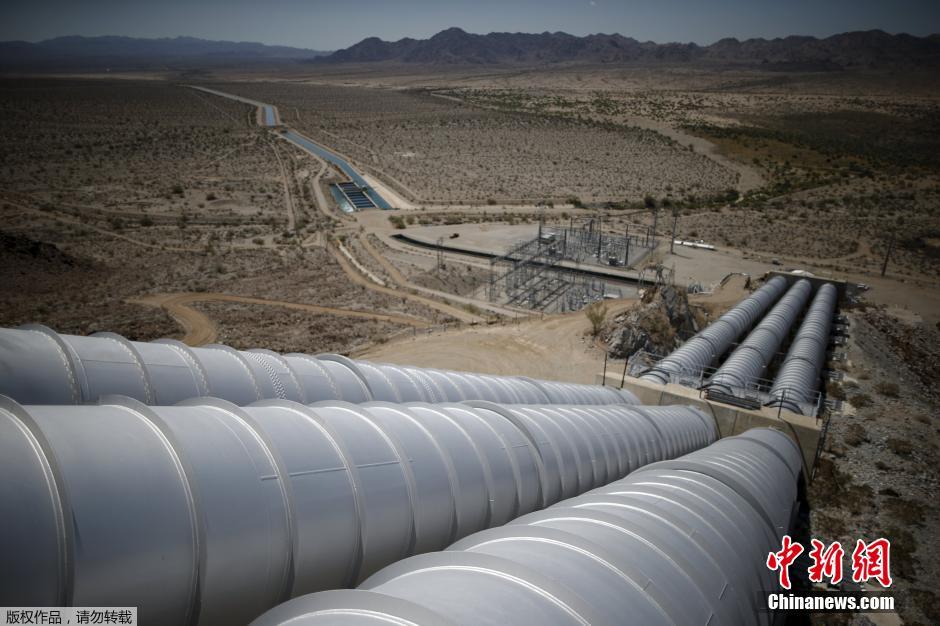 当地时间5月18日,美国加利福尼亚州,为了应对连续干旱,给加州南部供水,当地启用水泵将Havasu湖的湖水通过科罗拉多河渠输送到加州南部应急。