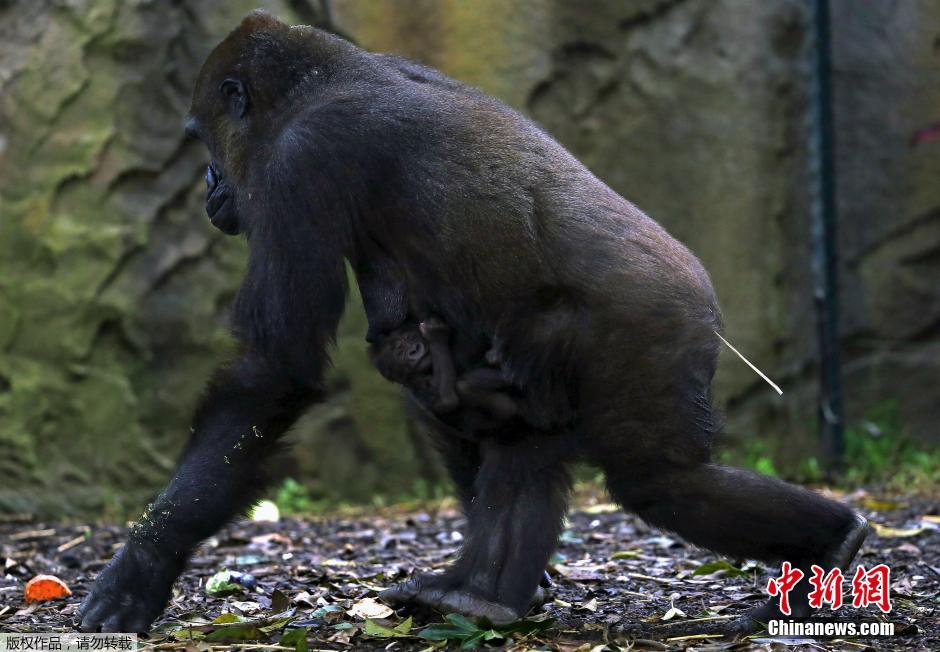 澳大利亚黑猩猩母子情深 幼崽趴母亲背上尽情酣睡