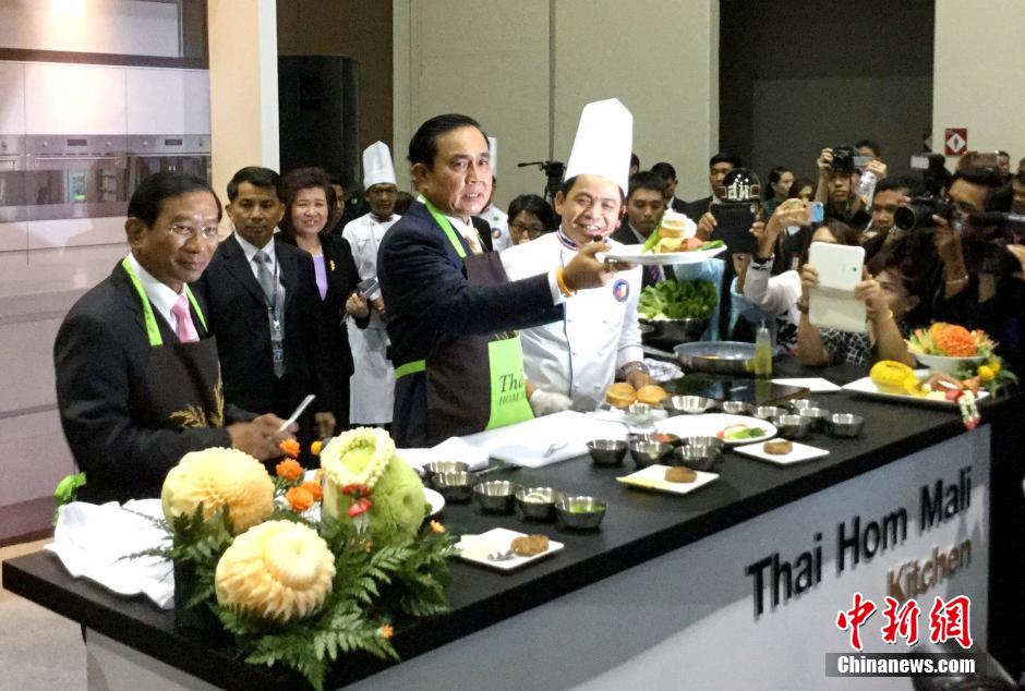 5月20日,2015泰国大米会议在曼谷开幕。泰国总理巴育出席会议并发表主题演讲。巴育表示,今年泰国降雨量比往年减少30%,泰国将从生产、育种、耕地开发、种植技术等方面出台可持续性政策和促进措施,加强与老挝、缅甸、越南、柬埔寨等东盟国家的合作,力促在东盟内部开展反倾销合作。大米占泰国农产品出口比重的七成。2014年,泰国出口大米1090万吨,是世界第一大米出口国。图为巴育推销泰国大米。中新社发 黄艳梅 摄