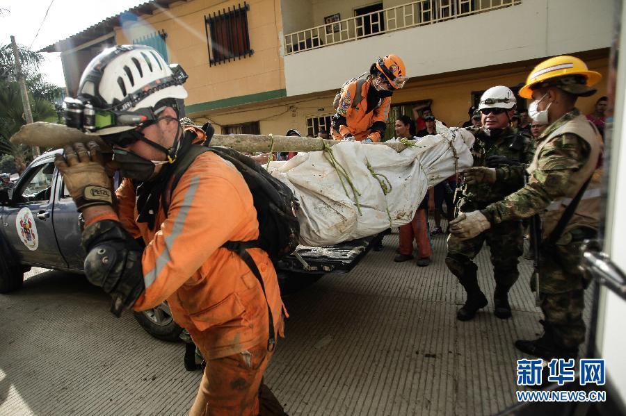 5月19日,在哥伦比亚西北部安蒂奥基亚省萨尔加尔市的墓地,救援人员搬运遇难者遗体。 新华社发 约翰·帕兹 摄 图片来源:新华网