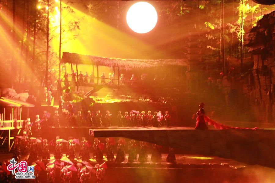 在凤凰全球摄影擂台赛官网(http://www.hpa.net.cn/bc/pc/index.aspx),黄铄涵所摄作品《新娘红》以35664票高居首位,彭运燕所摄作品《蜡染》以32265票紧随其后。【5月19日晚21:41分数据】《新娘红》取材于《边城》演出《尾声》,女主角翠翠一袭红衣迤逦桥头,圆月高挂空中,锣鼓唢呐吹起,昏黄的灯光下,营造出湘女多情柔媚之感。