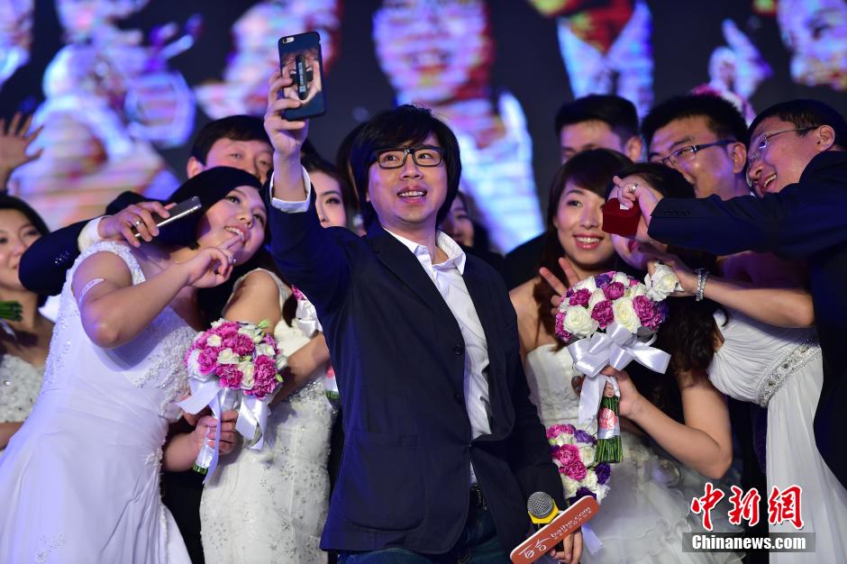 5月20日下午,一场别开生面的集体婚礼在北京昆泰酒店隆重举行。当日,30对新人在现场媒体和嘉宾的见证下求婚、宣誓、互换戒指。还得到了导演兼歌手卢庚戌等嘉宾的现场祝福,与新人共同庆祝这个特殊的日子。活动现场上,一段洋溢着青藏高原异域风情的视频,娓娓诉说了一段源平凡人的不凡爱情。他们跨越重重困难走到一起的爱情是对 “一生有你”的最佳诠释。故事中的主人公也来到现场,和大家分享了他们的爱情故事,并为庆典送上了祝福。中新网记者 金硕 摄