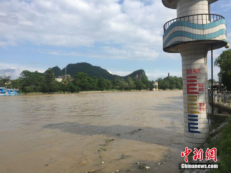 5月19日至20日,广西桂林遭遇暴雨侵袭,多条江河水位暴涨,官方接连两次发布暴雨红色预警,并拉响洪水红色警报。图为漓江市区段水位暴涨。中新社发 李果 摄