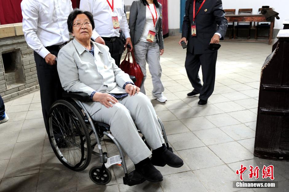 5月20日,毛主席之女李讷前来陕北参加“毛主席亲属与身边工作人员重走毛主席转战陕北路”活动,除了有李讷及丈夫王景清外,还有当年跟随毛主席转战陕北的电报员李锦华,毛主席身边工作人员王明富、陈长江、曾文等。当日,李讷等人一行先后参观了延安枣园革命旧址和杨家岭革命旧址。李讷是毛泽东和江青的女儿,1940年出生于延安。张远 摄