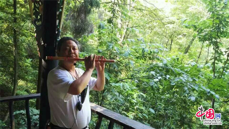 中国网5月16日讯 到过青城山的人,一定都对这样一个情景印象深刻:青翠欲滴的山林里,一座古朴典雅的廊亭中,传来一阵阵悠扬婉转的笛声,给这座千年道教名山增添了无尽的幽意。