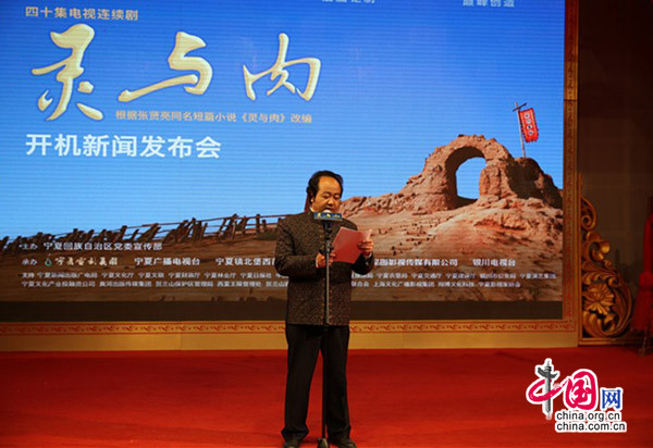 此次发布会选在由张贤亮先生一手筑起的镇北堡西部影城举行,这里曾孕育出《一个和八个》、《牧马人》、《红高粱》、《大话西游》等200多部优秀影视作品,堪称"东方好莱坞"。该剧由宁夏电影集团总经理,国家一级导演杨洪涛担纲总制片人,曾担任电影《画皮》系列、《金刚王:死亡救赎》的艺术总监、监制杨真鉴坐镇该剧的艺术总监及编剧指导,强大的幕后团队也成为了该剧品质的有力保障。在谈到新剧时,杨真鉴表示“这部电视剧,主要展现了以男主人公许灵均为代表的一代知识分子在残酷的自然环境、社会环境和人文环境的隔绝、碰撞与挣扎之下,通过各种痛及肉体、触及灵魂的奇绝测试,在面对生与死的抉择、善与恶的选择、美与丑的辨别、苦与乐的感受、个人与集体的平衡、物质与精神的取向、灵魂与肉体的撕扯的各类超级体验之中,展现出波澜壮阔的伟大人格,让广大观众对知识分子以及知识生命产生新的视点与新的价值取向判断。在被问及重拍经典是否有压力时,导演楼健说:“上中学的时候,第一次看到张贤亮先生的小说《灵与肉》,就被那与众不同的雅致气质和充满哲理性的反思所深深吸引,从此对文学和艺术产生了浓厚兴趣,并对宁夏这片神奇的土地充满好奇。近几年来,我一直都在拍摄类型化的商业正剧,我认为观众对于精品正剧的需求远远大于市场产量。能够执导电视剧《灵与肉》,我感到非常荣幸,这次《灵与肉》的剧本在杨真鉴老师的艺术规划与指导统筹下,将厚重而深刻的思想内涵与商业类型元素巧妙融合,对于生命、价值、信仰等人性命题进行了深度思考和阐释,构建出宏大的艺术格局。我相信这部充满着人文情怀和命运纠葛的史诗正剧,一定会受到广大观众的喜爱。”