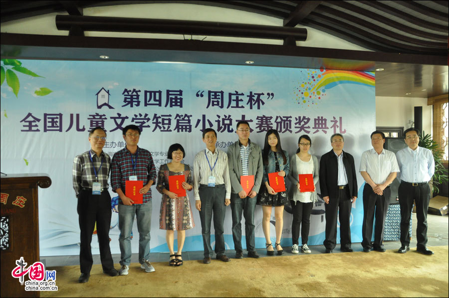 中国网5月7日讯 第四届“周庄杯”全国儿童文学短篇小说大赛颁奖典礼于2015年5月7日在“中国第一水乡”周庄隆重举行,上海世纪出版集团副总裁李远涛,上海市作家协会副主席秦文君,江苏省作家协会副主席祁智,儿童文学理论家、原《文汇报》副刊“笔会”主编刘绪源,上海世纪出版股份有限公司少年儿童出版社社长、总编辑周晴,江苏省作家协会儿童文学工作委员会主任马昇嘉,上海市作家协会儿童文学专业委员会副主任、陈伯吹儿童文学基金会秘书长周基亭,中共昆山市委宣传部副部长金建鸿,周庄镇人民政府副镇长任永东等嘉宾及获奖作家代表、少儿社编辑等70余人参加了此次盛典。