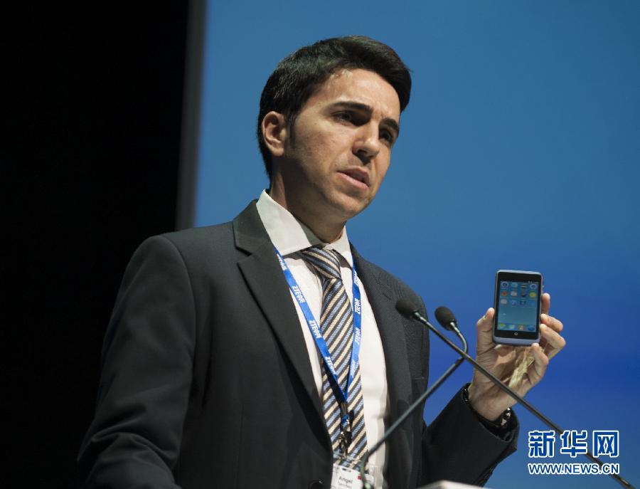 2014年2月24日,在西班牙巴塞罗那举行的世界移动通信大会上,中兴公司发布搭载火狐系统的智能手机ZTE Open C。新华社记者谢海宁摄