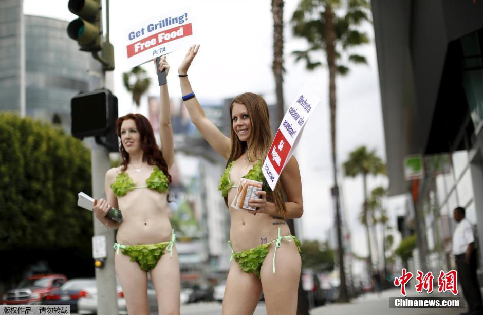 美女穿蔬菜比基尼洛杉矶街头宣传素食