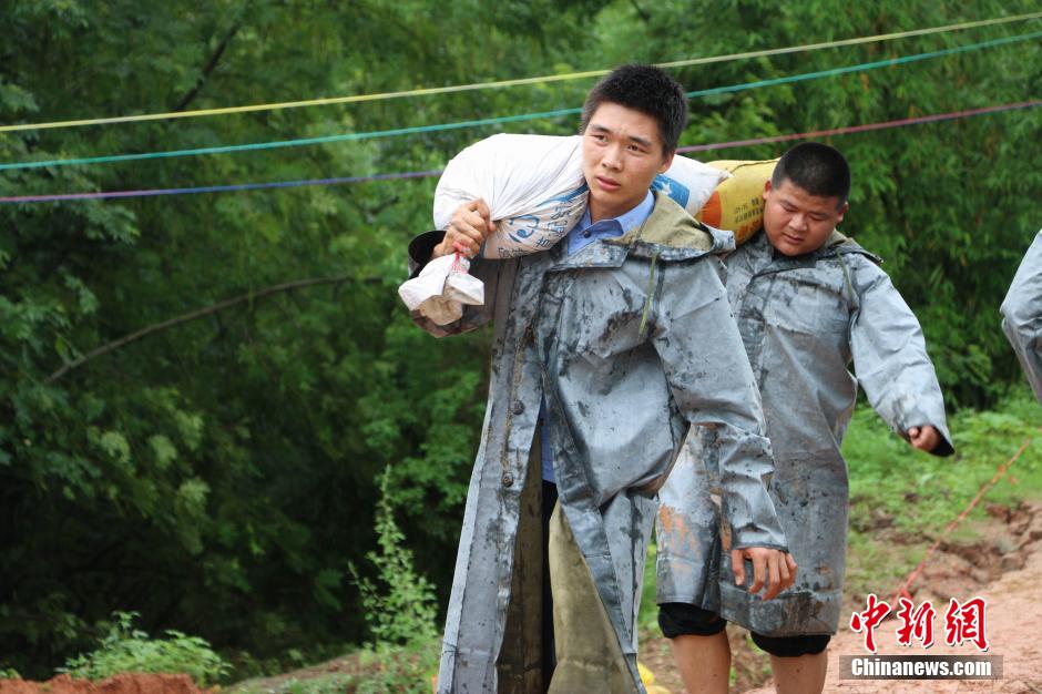 5月20日中午,一场暴雨过后,江西兴国县潋江镇凤凰村芳塘湾组河流,水势猛涨,河堤告急。围绕在村民房屋周围的防洪大堤在洪水的肆虐下,出现了一条长五十米左右的溃堤,原先用石头筑好的堤坝被洪水冲毁,岌岌可危,随时危及附近的村民生命财产安全。得知汛情后,江西兴国县民警与当地干部和群众组成救援队展开护堤行动。经过长达五个多小时的努力,一个个木桩牢固地屹立在洪水之中,一袋袋沙包被整齐有序地砌在木桩旁,灾情得到了有效地控制。 娄长福 摄