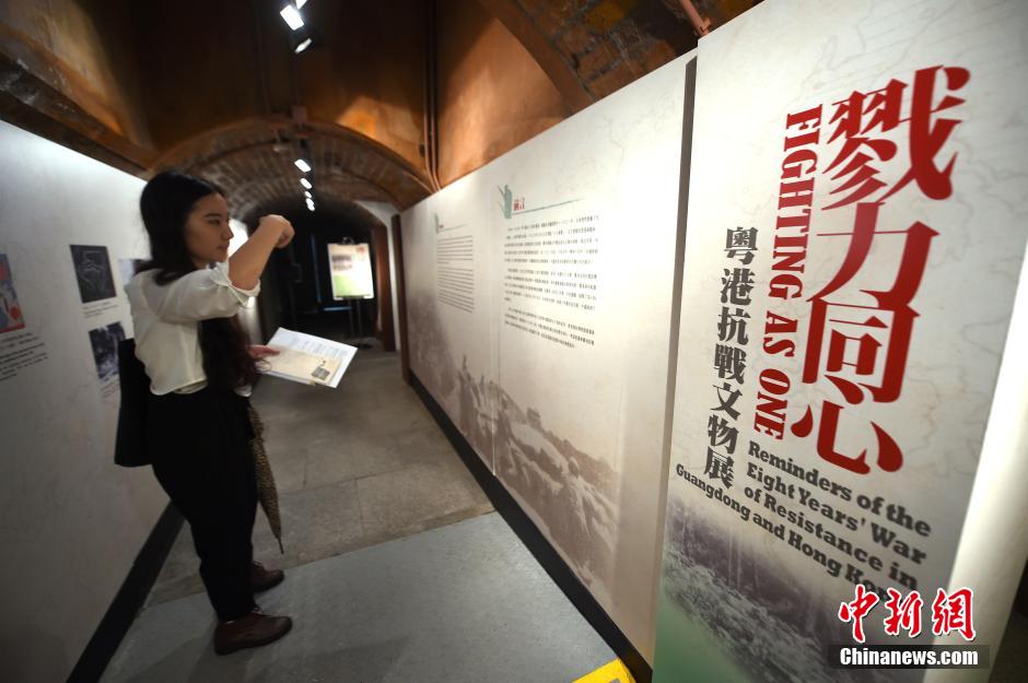 5月21日,“戮力同心——粤港抗战文物展”在香港海防博物馆举行。为纪念中国人民抗日战争胜利七十周年,香港海防博物馆与广东革命历史博物馆合办该展览,透过逾六十组珍贵的粤港抗战文物,包括地图、书信、抗战宣传刊物,以及日本占领香港时期发行的军票等,让参观者认识粤港两地人民参与抗战的经过。中新社发 张宇 摄