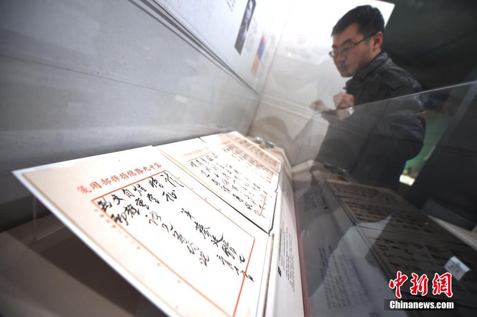 5月21日,“戮力同心——粤港抗战文物展”在香港海防博物馆举行。为纪念中国人民抗日战争胜利七十周年,香港海防博物馆与广东革命历史博物馆合办该展览,透过逾六十组珍贵的粤港抗战文物,包括地图、书信、抗战宣传刊物,以及日本占领香港时期发行的军票等,让参观者认识粤港两地人民参与抗战的经过。图为十九路军军长蔡廷锴致陈廉伯的信函中提及十九路军接济军粮及筹款等事宜。中新社发 张宇 摄